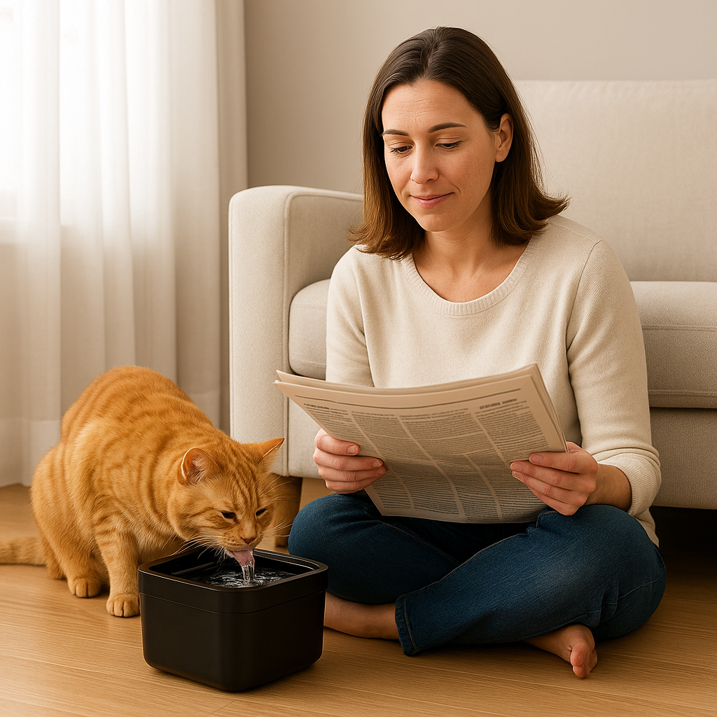 La fontaine AquaFlow FIDOZ est recommandée par 78 % de nos clients. Silencieuse, filtrée et design, elle encourage les chats à boire plus.