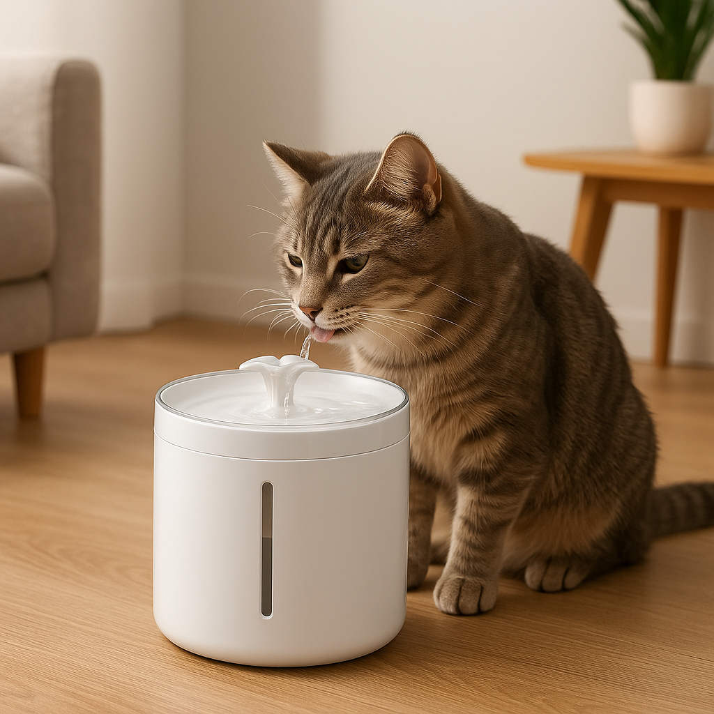 Fini les gamelles d’eau douteuses remplies de poils, de croquettes oubliées… ou de moustaches trempées.